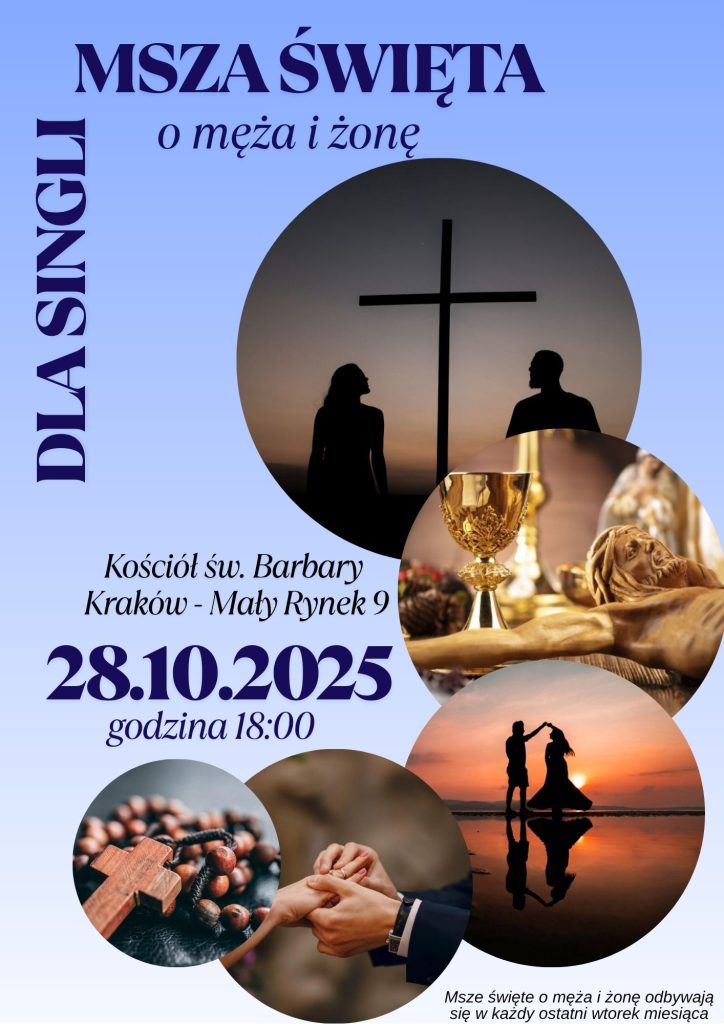 Zapraszamy na kolejną Mszę świętą dla singli: O męża i żonę; we wtorek 28 października o 18:00 w kościele Świętej Barbary (przy placu Mariackim).